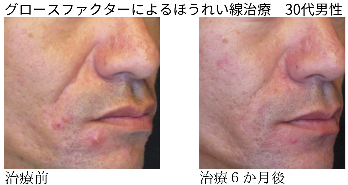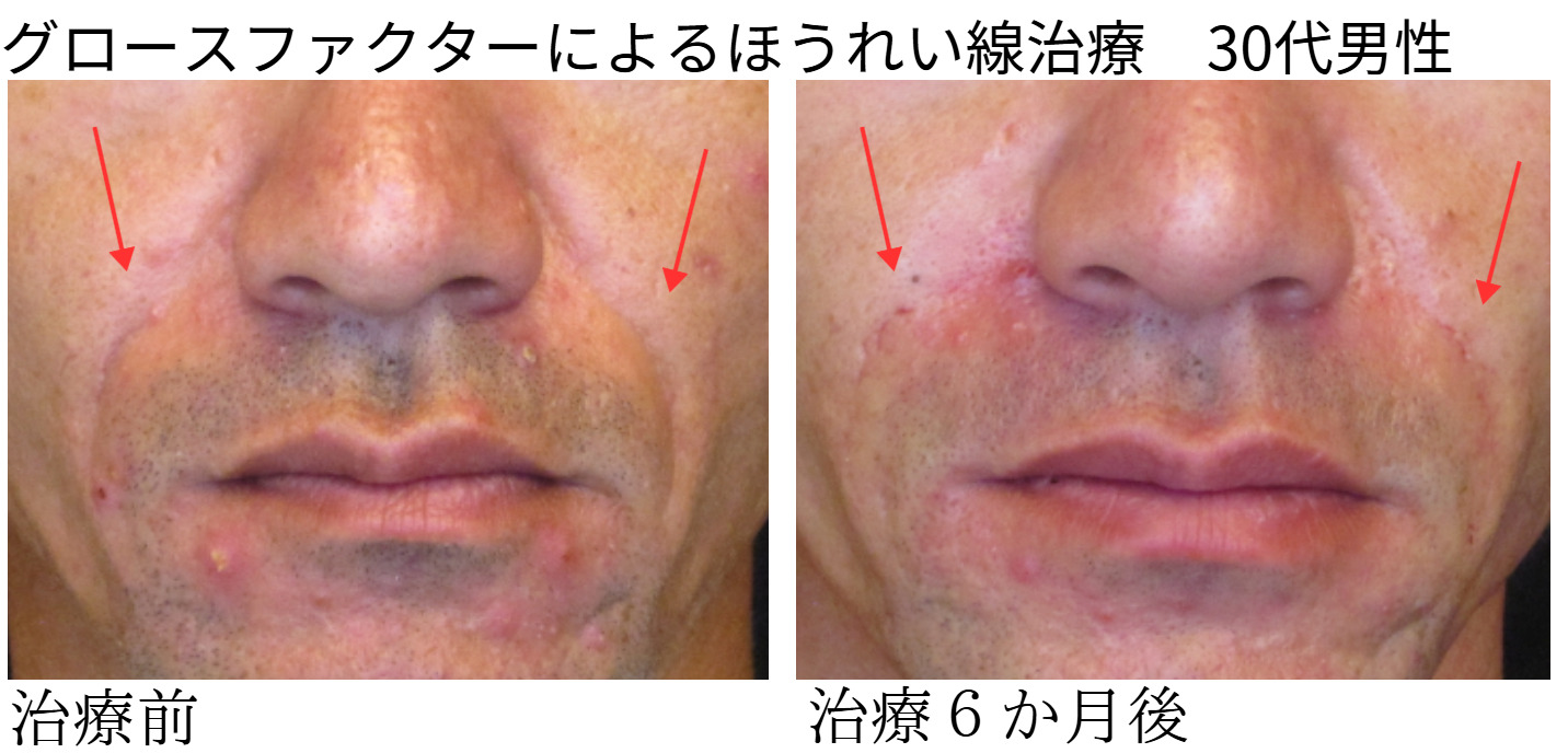 当院で行ったグロースファクターによるほうれい線治療の症例です。